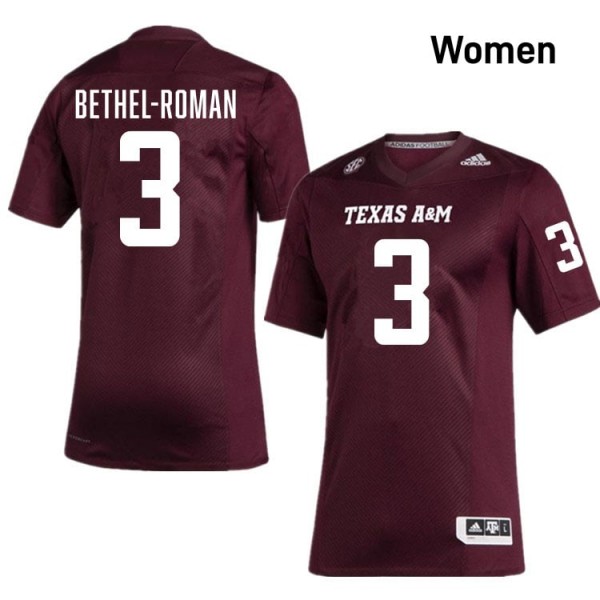 #3 Ashton Bethel-Roman Texas A&M SEC Football College Embroidered Numbers Jersey (Women, Maroon) 14923244