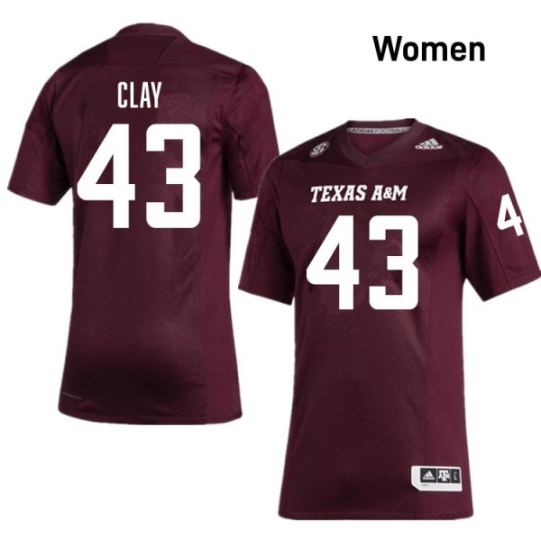 Aggies SEC #43 Zachary Clay Women University Football Maroon Game Day Sewn Jersey 34988360