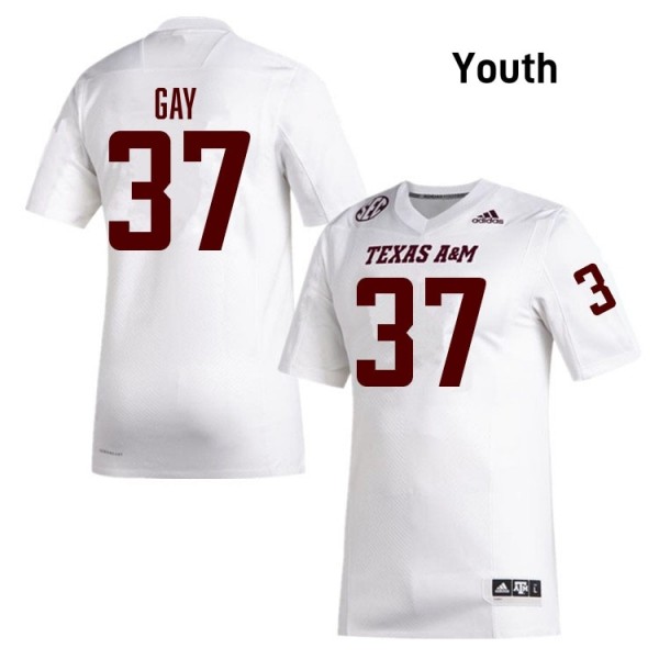 Aggies White #37 Peyton Gay Youth Authentic SEC NCAA Pro-Stitched Football Jersey 77706564