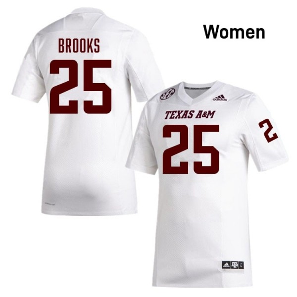 Dalton Brooks Women Licensed #25 Texas A&M Aggies SEC White Football College High-Quality Jersey 70133720
