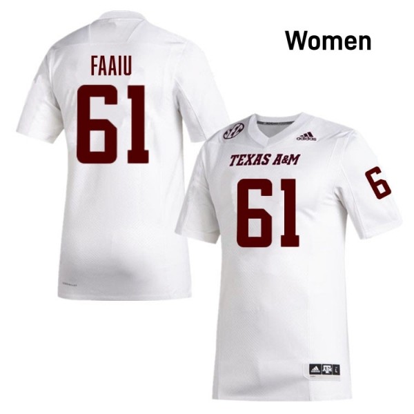 Koli Faaiu Women Licensed #61 Texas A&M Aggies SEC White Football University High-Quality Jersey 14867325