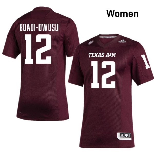 Secure Your Piece of Texas A&M Aggies: Maroon Nana Boadi-Owusu #12 Texas A&M Legacy Edition Football Women College Durable-Stitched SEC Jersey 58149525 - Feel the Aggies Fire Ignite