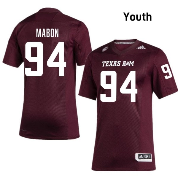 Nathan Mabon Youth Licensed #94 Texas A&M Aggies SEC Maroon Football College High-Quality Jersey 48345937