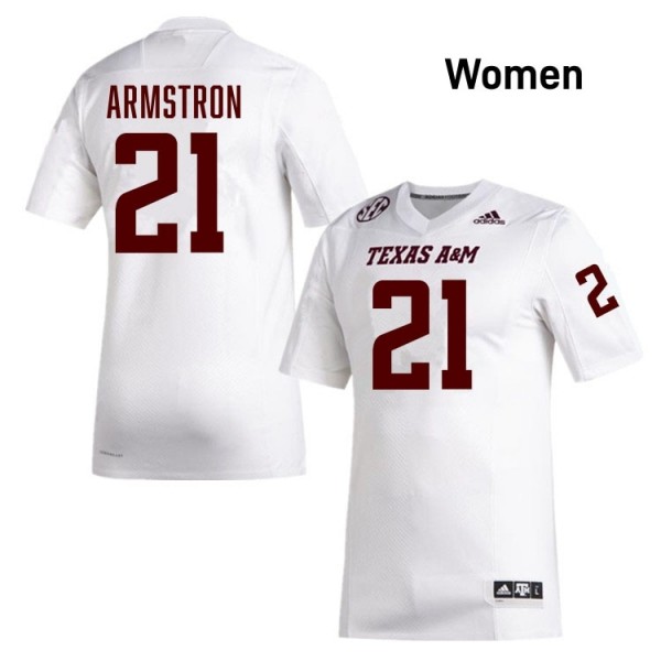 Texas A&M Aggies White #21 Kiotti Armstrong Women Authentic SEC College Pro-Stitched Football Jersey 34349593
