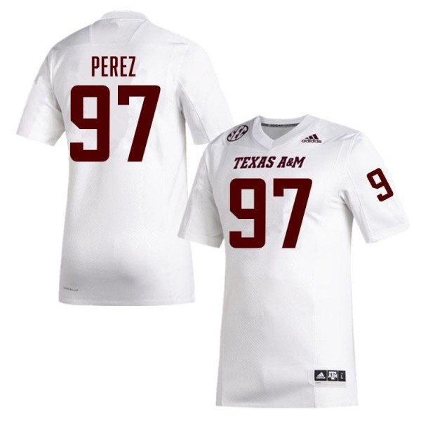 Texas A&M White #97 Alessandro Perez Men Authentic SEC High School Pro-Stitched Football Jersey 61867027